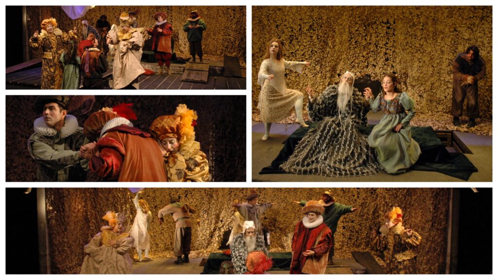 Στην άλλη παράσταση, στον Ληρ, αντιστρέψαμε το φύλο των ηρώων και έτσι είχαμε μια βασίλισσα με τρεις γιούς, για να εξυπηρετηθεί μια δεσμευτική συνθήκη, ότι οι γυναίκες ηθοποιοί ήσαν περισσότερες από τους άνδρες. Αλλά και αυτό δεν αντιβαίνει στην πραγματικότητα του συγγραφέα, αφού ο ίδιος έγραψε το έργο ξέροντας ότι όλους τους ρόλους θα τους έπαιζαν άνδρες ηθοποιοί. Η ιδέα αυτής της παράστασης προέκυψε από την επιτυχημένη εργασία των τελειόφοιτων μιας προηγούμενης χρονιάς της δραματικής σχολής, όταν δουλέψαμε μαζί τη Δολοφονία του Μαρά, του Πήτερ Βάις. Όταν αποφοίτησαν οι νέοι ηθοποιοί συγκρότησαν θίασο, με σκοπό να εφαρμόσουν το μοντέλο της παράστασης του Μαρά, πάνω σε ένα άλλο κλασικό έργο, συνεχίζοντας την έρευνα τους στην υποκριτική και την παράσταση.