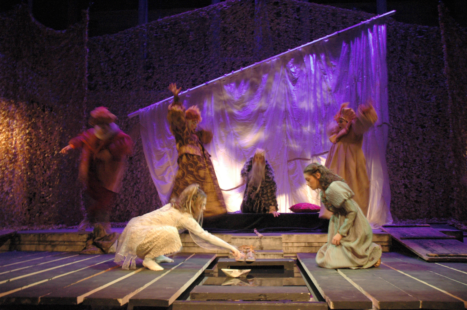 Και στις δυο παραστάσεις κόπηκαν κομμάτια του πρωτότυπου, κυρίως για να συντομευθεί ο χρόνος της παράστασης, αλλά δεν προστέθηκε κείμενο από άλλο έργο ή από άλλον συγγραφέα. Δεν έγινε καμιά αλλαγή στη ροή των γεγονότων και την εξέλιξη της ιστορίας και διατηρήθηκαν οι χαρακτήρες και οι σχέσεις των ρόλων. Στην Τρικυμία δόθηκαν σκηνές, που έτσι κι αλλιώς μπορεί να διαδραματίζονται συγχρόνως σε άλλο μέρος του νησιού του Πρόσπερου, με το να τις παρακολουθούμε παράλληλα, ενώ ο Σαίξπηρ τις έχει γραμμένες να ακολουθεί η μια την άλλη. Ο τεμαχισμός των σκηνών έδινε γρηγορότερο ρυθμό στα γεγονότα και βοηθούσε στην ανανέωση του ενδιαφέροντος και της προσοχής του θεατή, δημιουργώντας ένα μεγαλύτερο σασπένς για την εξέλιξη της σκηνής, με το να διακόπτεται και να συνεχίζεται με κάποια χρονική μετατόπιση. Οι επεμβάσεις πάντως υπαγορεύτηκαν από τη συνθήκη ότι η παράσταση απευθυνόταν κυρίως σε παιδιά, επομένως έπρεπε να ληφθεί υπ’ όψιν η δυνατότητα προσήλωσης στην εξέλιξη της ιστορίας και παράλληλα να μεγεθυνθούν τα θεαματικά στοιχεία για να μη βαριούνται οι μικρότεροι θεατές, που δυσκολεύονταν στην παρακολούθηση των σαιξπηρικών νοημάτων.