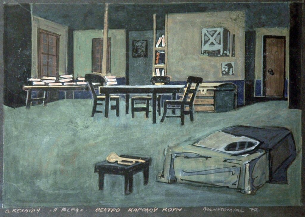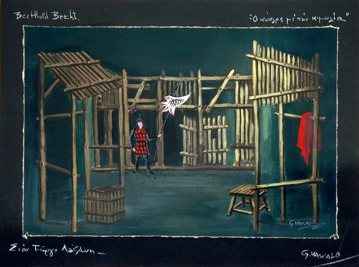 [Στις φωτογραφίες, μακέτες σκηνικών από παραστάσεις του Θεάτρου Τέχνης: Βρυκόλακες του Γ. Στεφανέλλη (1943), 12η Νύχτα του Γ. Τσαρούχη (1956), Ο Κύκλος με την Κιμωλία του Γ. Βακαλό (1957), Λίβινγκ Ρουμ του Γ. Μόραλη (1957), Ο Θάνατος του Εμποράκου του Β. Βασιλειάδη (1962), Η Βέρα του Λ. Βενετούλια (1972), Το Μονοπάτι που πάει βαθειά μεσ’ στο Βορρά του Δ. Μυταρά (1973), Λευκός Γάμος του Β. Φωτόπουλου (1980), Το Πανηγύρι του Δ. Ζαρίφη (1982), Δεσποινίς Τζούλια του Κ. Κατζουράκη (1992).]