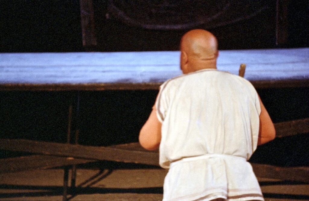 Ο πρωταγωνιστής εξάωρης παράστασης του Θεάτρου Μάλι της Μόσχας, βγαίνει στον χαιρετισμό, (μετά από έξι ώρες, που έπαιζε έναν ρόλο από δεκαέξι χρονών μέχρι πενήντα, σχεδόν συνεχώς επί σκηνής) και μπαινοβγαίνει στην υπόκλιση χορεύοντας, με απίστευτη ενέργεια, ενώ στην άκρη της σκηνής υποκλίνεται με μεγάλη σεμνότητα ο σκηνοθέτης του.