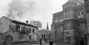 Να μιλήσουμε για εμάς; Είναι δυνατόν ένας πρωθυπουργός να διαρρηγνύει τα ιμάτιά του ότι θα προστατεύσει τα προσκυνήματα στους Αγίους Τόπους – στα οποία έχουν καταφύγει και Ορθόδοξοι Παλαιστίνιοι – κι όταν βομβαρδίζεται η Ιερά Μονή του Αγίου Πορφυρίου να ποιεί την νήσσαν;; Τοποθεσίες που αποτελούν κατά παράδοση Ελληνικό Έδαφος! Και να μη φεύγουν οι Πατέρες από εκεί για να υπερασπίσουν τα προσκυνήματα!