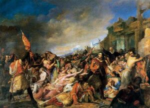 Μαρτυρική υπήρξε η ημέρα αυτή και για τους Μεσολογγίτες τον Απρίλιο του 1826, οι οποίοι, μετά από έναν χρόνο σφοδρής πολιορκίας κατά την οποία έφτασαν στο αποκορύφωμα της εξαθλίωσης, αποφάσισαν να κάνουν Έξοδο. Την Έξοδο πραγματοποίησαν βράδυ του Σαββάτου του Λαζάρου, ξημερώματα Κυριακής των Βαΐων. Πάμε να δούμε τα γεγονότα…