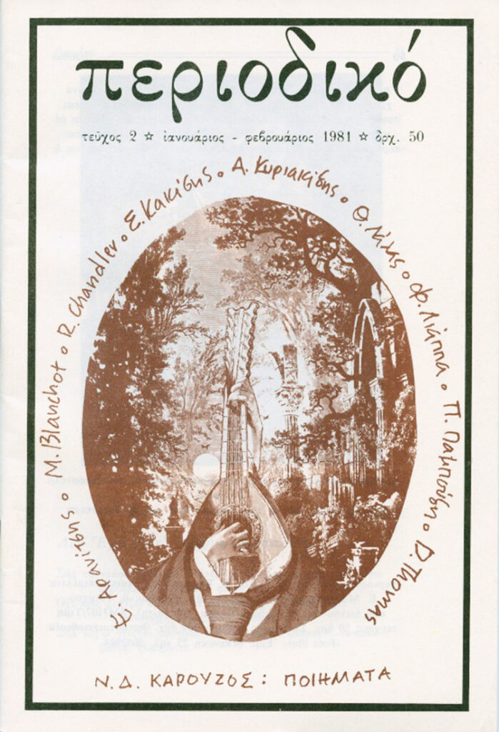 Γαραντούδης, Ευρ. (2002). Τα μεταπολεμικά λογοτεχνικά περιοδικά: λογοτεχνία, κριτική και ιδεολογία. Στο Η εκρηκτική Εικοσαετία (1947-1967), (Αθήνα, 10-12 Νοεμβρίου 2000), 313-337. Αθήνα: Εταιρεία Σπουδών Νεοελληνικού Πολιτισμού και Γενικής Παιδείας (Ιδρυτής: Σχολή Μωραΐτη).