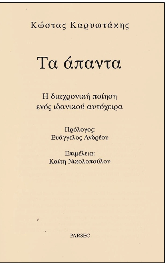 Πρώτα πρώτα θα ήθελα να εκφράσω την ικανοποίησή μου γι’ αυτή την έκδοση, η οποία δείχνει σεβασμό στους παλαιότερους δημιουργούς, συχνά ξεχασμένους, πράγμα λυπηρόν, και κυρίως άγνωστους στους νεότερους που…