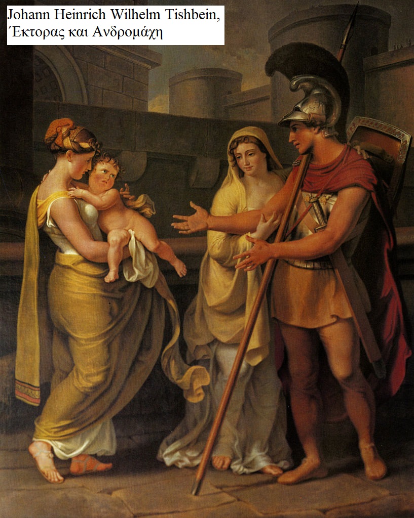 (H περίφημη, τρυφερή συνάντηση ΄Εκτορα και Ανδρομάχης, από τις ωραιότερες σκηνές της Ιλιάδας) Σχ. 1 «΄Αμοιρε, αυτή σου η ορμή θε να σε καταστρέψει και δεν λυπάσαι το μωρό…