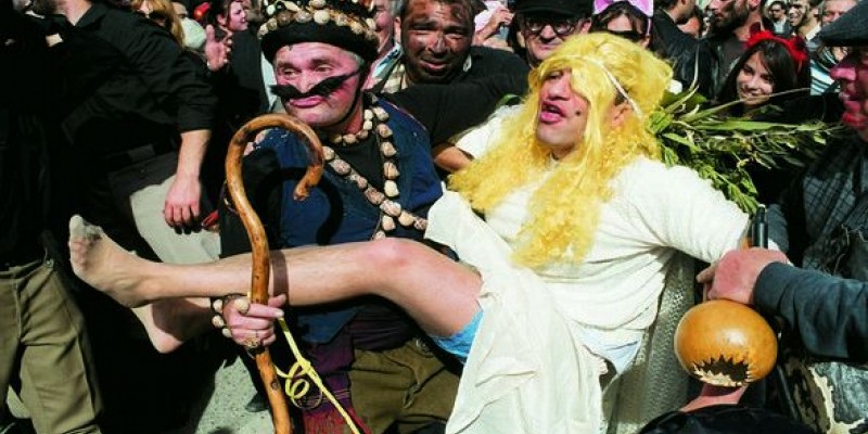 Στο καφενείο ο παπάς κι ο δάσκαλος έπιναν καφέ σκυφτοί κι αμίλητοι, γεμάτοι θλίψη. Στους δρόμους γκλιγκάνιζαν οι κουδούνες, σφύριζαν οι κουδουναραίοι. Όλη τη μέρα πετάγονταν από γωνίες και τρομοκρατούσαν…