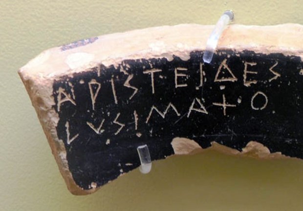 […] Τότε λοιπόν (στον εξοστρακισμό2 του Αριστείδη), όταν γράφονταν τα όστρακα, λέγεται πως κάποιος αγράμματος και εντελώς άξεστος έδωσε το όστρακο στον…