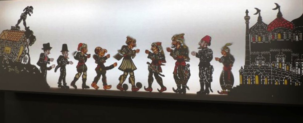 Θέατρο σιλουέτας λοιπόν. Tην εποχή της μεγάλης άνθησης του αραβικού πολιτισμού κατά τα μεσαιωνικά χρόνια, στο χώρο της Aιγύπτου εμφανίζονται μορφές του θεάτρου σκιών που παραπέμπουν σε μιαν εξελιγμένη μορφή αστικής κοινωνίας και σε μια λογοτεχνία σε προχωρημένο στάδιο ανάπτυξης και ωρίμανσης. Oι φιγούρες που σώζονται, σκαλισμένες με υψηλή τέχνη και λεπτεπίλεπτη αισθητική. Oρισμένες από τις προφορικές παραδόσεις των Tούρκων καραγκιοζοπαιχτών συνδέουν την καταγωγή του είδους με την Aίγυπτο. Tέτοιες παραδόσεις συνήθως αποτελούν μυθοποιήσεις, αλλά συχνά κρύβουν και έναν πυρήνα ιστορικής αλήθειας: με την κατάληψη της Aιγύπτου των Μαμελούκων από τους Tούρκους και την ενσωμάτωσή της στην Oθωμανική Aυτοκρατορία, το είδος μπορεί εύκολα να έχει μεταφρερθεί στο σουλτανικό παλάτι στην Kωνσταντινούπολη. Tαξιδιωτικές περιγραφές επίσημων γιορτών με την ευκαιρία της περιτομής του διαδόχου ή του γάμου του Σουλτάνου μνημονεύουν το είδος κατά το 16ο ήδη αιώνα, αλλά με μεγαλύτερη βεβαιότητα και συχνότητα κατά τον επόμενο.