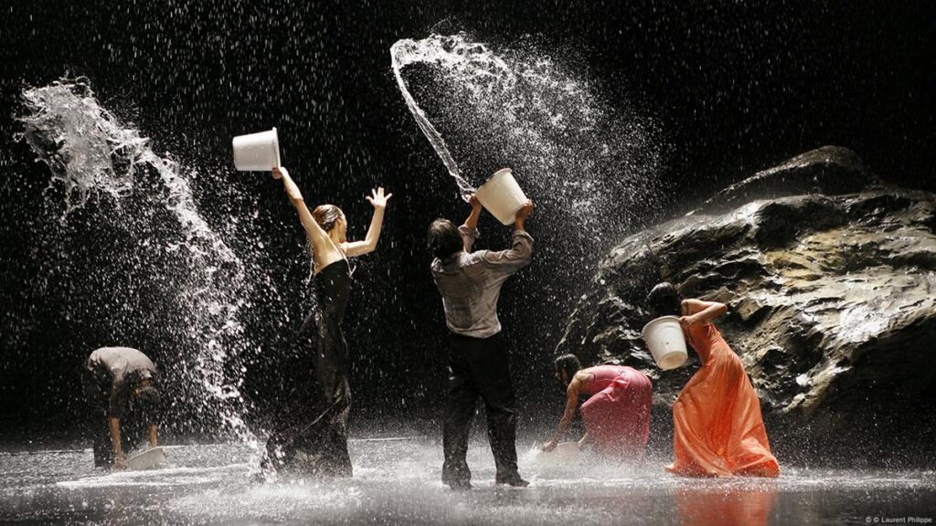 Η διαχείριση του σκηνικού χρόνου χαρακτηρίζεται και από ρυθμό, ή καλύτερα ρυθμούς στον πληθυντικό, και την αλλαγή και εναλλαγή των ρυθμών. Ο ρυθμός ως τακτική επανάληψη δεν υπάρχει χωρίς την αντίληψή του, την εμπειρία[66]. Στην παράσταση ο ρυθμός είναι ένα φαινόμενο του “ενδιάμεσου γίγνεσθαι”, που εκδηλώνεται ακουστικά, οπτικά ή και απτικά[67]. Υπάρχουν όμως και κοσμικοί ρυθμοί και σωματικοί ρυθμοί (χτύποι καρδιάς, σφυγμός κτλ.). Είναι στη φύση του ρυθμού πως δεν αποτελείται μόνο από την τακτική επανάληψη, αλλά και από τη διακοπή της τακτικότητας με ενοχλήσεις, ρήξεις, παύσεις, ασυνέχειες και τροποποιήσεις[68]· μάλιστα η εναλλαγή αυτών των ρυθμικών στοιχείων είναι η φύση της ρυθμολογίας: υπάρχει ως επαναληπτική διάταξη μέσα στο χρόνο και ταυτόχρονα είναι και υπέρβαση αυτής της διάταξης[69]. Ως προς την πρόσληψη του ρυθμού ισχύει ακόμα ένα άλλο σημείο: στην αντίληψή του ενώνονται (ή δεν ενώνονται) δύο διαφορετικοί ρυθμοί, του παρατηρητή που αποδίδει σ’ ένα φαινόμενο τον ρυθμό, και του παρατηρούμενου φαινομένου[70]. Αυτή η συνάντηση του ρυθμού της σκηνοθεσίας με το σωματικό ρυθμό του θεατή δημιουργεί το ρυθμό της παράσταση[71]. Ο ρυθμός της παράστασης, επειδή δεν είναι μια αντικειμενική μετρήσιμη τιμή ούτε μια καθαρά υποκειμενική υπόθεση της αντίληψης, ανήκει στο “ενδιάμεσο γίγνεσθαι”του αναδραστικού κύκλου. Αλλά ο θεατής δεν είναι μόνος του στο θέατρο: ο δικός του ρυθμός βαθμιαία προσαρμόζεται (ή όχι ή μερικώς κτλ.) στους ρυθμούς των άλλων, θεατών και ηθοποιών, μέσω της σωματικής διάδρασης που επιφέρει η συμπαρουσία τους[72]. Έτσι η ευχαρίστηση της ευρυθμίας μιας παράστασης μπορεί να μην είναι αποτέλεσμα μιας καλής και έξυπνης σκηνοθεσίας, αλλά μπορεί και να επέλθει με την αποκατάσταση μιας αρμονίας των ρυθμών στο χωρό των θεατών μέσω των αντιδράσεών τους και τις υπόγειες ενέργειες της μέθεξης. Έτσι η σωματική συμπαρουσία των θεατών μαζί με το κοινό βίωμα του “ενδιάμεσου γεγονότος” της παράστασης μπορεί να δημιουργήσει μια “κοινότητα” (με την έννοια του Max Ηerrmann, βλ. παραπάνω), μόνο με την απελευθέρωση, ανταλλαγή, μεταφορά και κυκλοφορία της ψυχικής ενέργειας που εκδηλώνεται στη μέθεξη και προσοχή, χωρίς ιδεολογήματα και διακηρύξεις, κανόνες και διατάξεις, πεποιθήσεις και οργανώσεις[73]. Με την έννοια αυτή ρυθμός είναι και ένα φαινόμενο της κοινωνικότητας, η οποία μπορεί να εκδηλώνεται, να διαμορφώνεται και να συγκεκριμενοποιείται κατά τη διάρκεια μιας θεατρικής παραστασης.