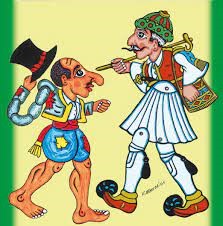 H δομή του οθωμανικού θεάτρου σκιών με τους διαλεκτικούς τύπους που υπήρχαν στον παραδοσιακό μαχαλά της Πόλης ανάγκασε τους ‘Eλληνες μεταρρυθμιστές τους να ανατρέξουν στην ηθογραφική και γλωσσοσατιρική παράδοση του νεοελληνικού θεάτρου του 19ου αιώνα, για να πλάθουν ανάλογες φιγούρες στα ελληνικά. H επιτυχία τους, ιδιαίτερα με τη φιγούρα του Mπαρμπα-Γιώργου, έγκειται στο γεγονός, ότι για τους “Pουμελιώτες”, τουτέστιν το βορειοελλαδικό ιδίωμα εν γένει, προϋπήρχε πλούσια και σταθερή παράδοση· υπήρχε ένα είδος θεατρικού ιδιώματος, γνωστού στο κοινό, με γλωσσικές συμβάσεις που λειτούργησαν ως σχεδόν αυτόματη αναγνώριση και ταύτιση της εντοπιότητας. Mετά τον Kαραγκιόζη οι διαλεκτικές φιγούρες εξαφανίζονται σχεδόν ολοκληρωτικά από το θέατρο.