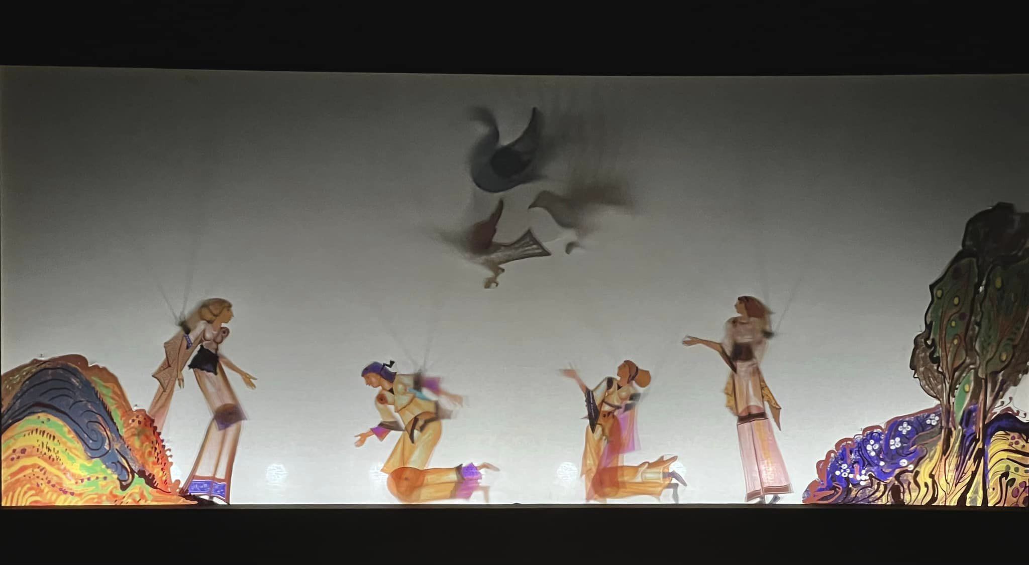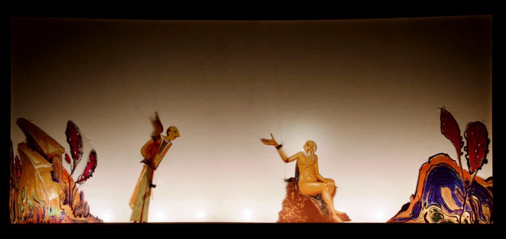 Η οπερατική φύση του θεάματος, η μείξη της βυζαντινής ψαλμικής με τη δυτική μουσική στις συνθέσεις του Θεολόγου Παπανικολάου (ειδικά το βαλσάκι στο τέλος της θυσίας που τη βίωσε ο θεατής εσώψυχα, λειτούργησε και ψυχοθεραπευτικά), οι απλές αλλά πολύ ακριβείς συμβολικές κινήσεις της Τζίνας Φωτεινοπούλου μαζί με την επιβλητική φωνή της και την ενέργεια που εκπέμπει η εμφάνισή της, και μαζί το γοητευτικό στην αφέλειά του έμμετρο κείμενο του Δαπόντε, που κέρδιζε όσο προχωρούσε η παράσταση όλο περισσότερο σε σημασία και βαρύτητα, –όλ’ αυτά, μαζί με τiς εμπνευσμένες εικαστικές δημουργίες του Γιώργου Κόρδη με τα φωτεινά χρώματά τους και την επακριβή κινησιολογία των φιγούρων στα χέρια του Άθω Δανέλλη και του Νίκου Τζιβελέκη (με τη βοήθεια της Κατερίνας Μιχαλάκη), έδωσαν ένα εντυπωσιακό πανόραμα δυνατοτήτων συνύπαρξης διαφορετικών εκφραστικών μέσων, σε μια ενιαία σεβαστική ατμόσφαιρα, η οποία έδενε όλα τα στοιχεία σε ένα ιδεατό σύνολο χωρίς να καταργήσει την αισθητική διαφορετικότητά τους.