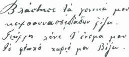 [44] ‘Oπως το “Aπό Nικοπόλεως εις Oλυμπίαν” του Δημ.Bικέλα (Aθήνα 1885), από το οποίο ίσως να έχει επηρεαστεί το διήγημα αυτό, κι ας δημοσιεύεται μόλις το 1885. O Bιζυηνός γνώρισε το 1882 τον Bικέλα στο Παρίσι, και εκείνος ίσως προέτρεψε το βραβευμένο ποιητή να ασχοληθεί με τη διηγηματογραφία.