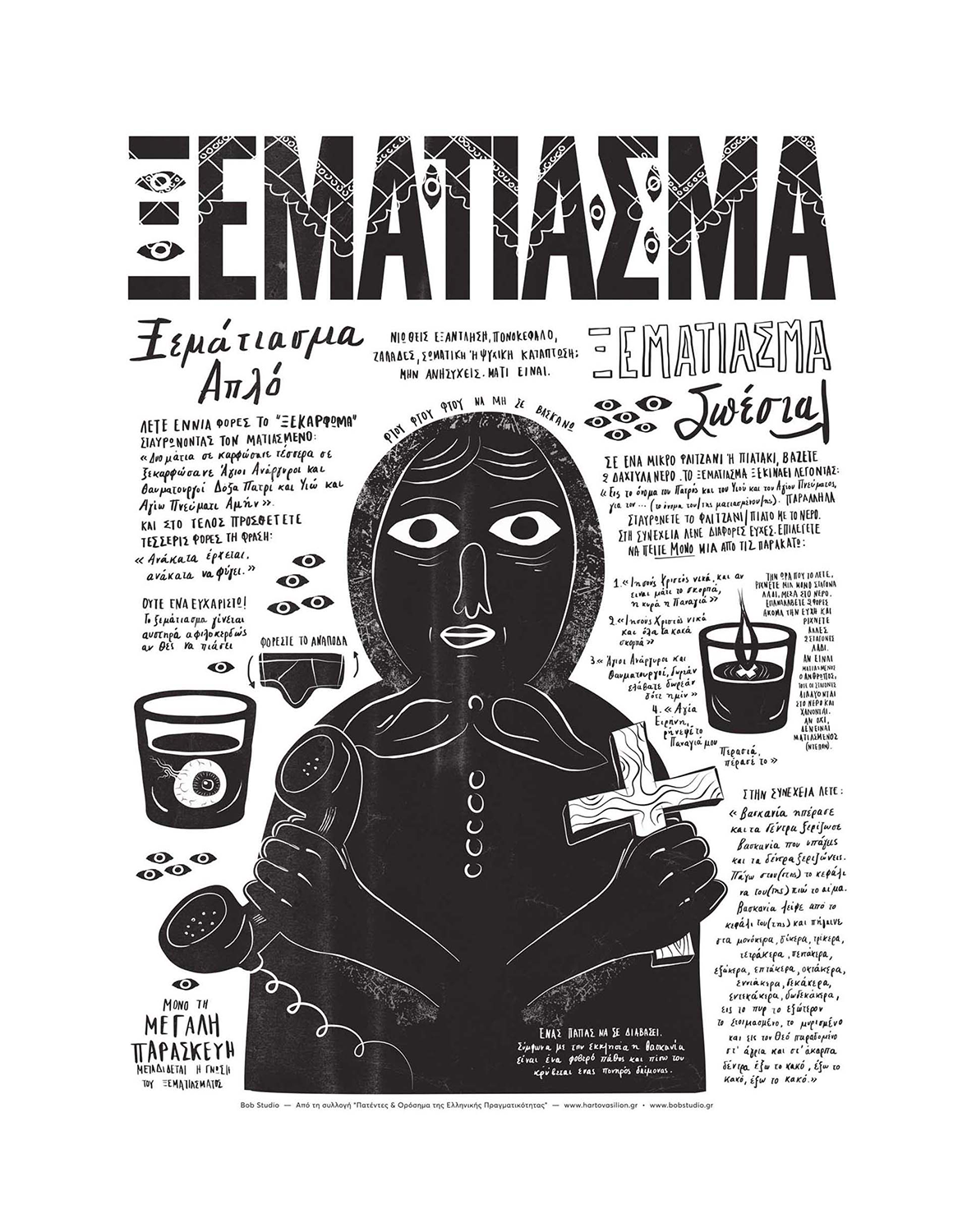 [29] Abbott 1903 (21969, 141-146), Hardie 1923, Knecht 1968, Blum 1970 (βόρεια Ελλάδα), Dionisopoulos-Mass 1976, Δ. Στάμος, «Το μάτιασμα (Η βασκανία)», Πράμαντα, Ιανουάριος-Φεβρουάριος 2003, 6 εξ., του ίδιου, «Το ξεμάτιασμα (ο εξορκισμός)», αυτόθι, Ιούλιος-Aύγουστος 2003, 6 εξ., Campbell 1964: 31, Δ. Σέττας, Eύβοια – Λαϊκός πολιτισμός, τόμ. 1, Aθήνα 1976, 275-284, Δ. Β. Οικονομίδης, «Εξορκισμοί και ιατροσόφια εξ ηπειρωτικού χειρογράφου», Επετηρίς Λαογραφικού Αρχείου 8 (1953-54) 14-40.