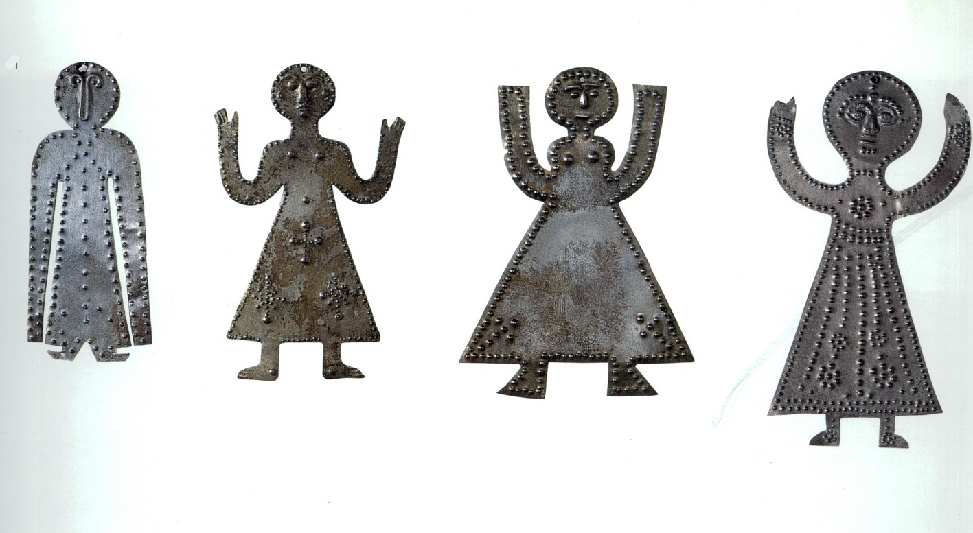 Το περίγραμμα των προσώπων σημαδεύεται με τελίτσες σε μια νοητή γραμμή· αυτά τα πρόσωπα συχνά απεικονίζονται σε στάση προσκύνησης με ανοιγμένα και σηκωμένα χέρια[18] ή με το χέρι στο στήθος[19]. Αυτά τα πινάκια τοποθετύνται σε μεταλλική βέργα ή ένα σκοινί κάτω από την εικόνα του Αγίου ή και ως περιδέραιο πάνω σε αυτή στο κάτω μέρος· παλαιότερα τάματα παρουσιάζονται και σε ξύλινα ντουλαπάκια. Παρόμοιο τάξιμο είναι και το ασήμωμα ή χρύσωμα της εικόνας ή και προσφορές σε μορφή λαμπάδας ή κεριών[20].