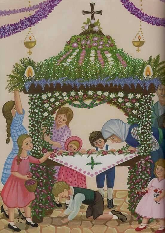 Το βράδυ της Μ. Πέμπτης οι μανάδες πήγαιναν τα παιδιά τους στην εκκλησία για να προσκυνήσουν τον ανθοστολισμένο Επιτάφιο και να περάσουν σταυρωτά τρεις φορές κάτω απ’ αυτόν για να πάρουν την ευλογία του Χριστού από τον Τάφο όπου βρέθηκε πριν αναστηθεί Τριήμερος.