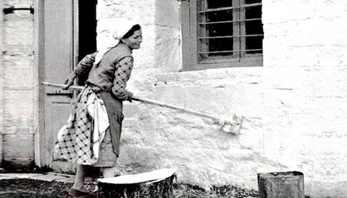 (…)Καὶ ὅταν ἔμβαινεν ἡ Μεγάλη Ἑβδομάς, ἐδιπλασίαζε τ᾽ ἀσπρίσματα καὶ τὰ πλυσίματα, τόσον ὁποὺ ἔκαμνε τὸ πάτωμα ν᾽ ἀστράφτῃ, καὶ τὸν τοῖχον νὰ ζηλεύῃ τὸ πάτωμα.